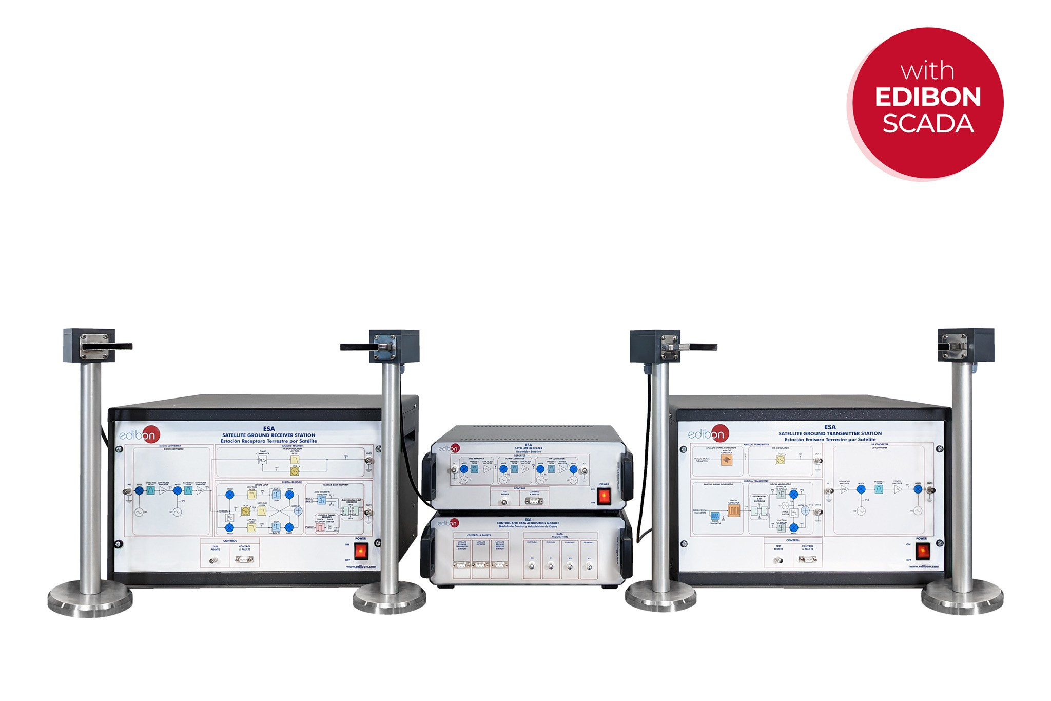 - El Equipo de Satélites (ESA), que es un sistema avanzado que funciona junto con un computador (PC), que permite a los estudiantes una manera fácil de gestionar y visualizar los datos. El software «ESA» permite realizar varias acciones: configurar los datos de envío, seleccionar el punto de prueba que se desea visualizar, seleccionar diferentes fallos en el equipo, etc.