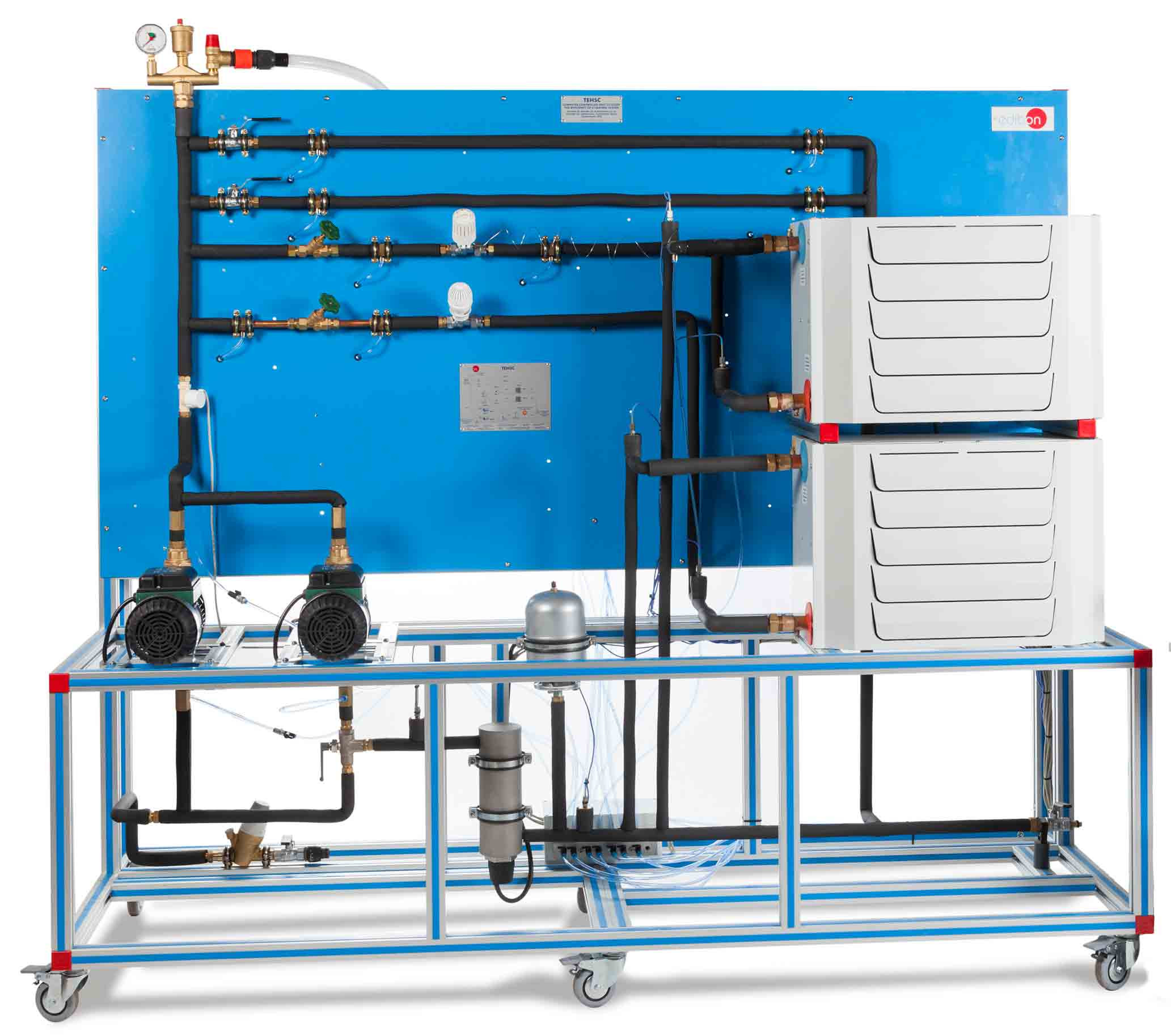 • Computer Controlled Hot Water and Heating Generation Unit (EACC): This unit allows students to understand heating installations and domestic hot water production for single-family homes or extend this knowledge to collective buildings with a boiler in each residence.